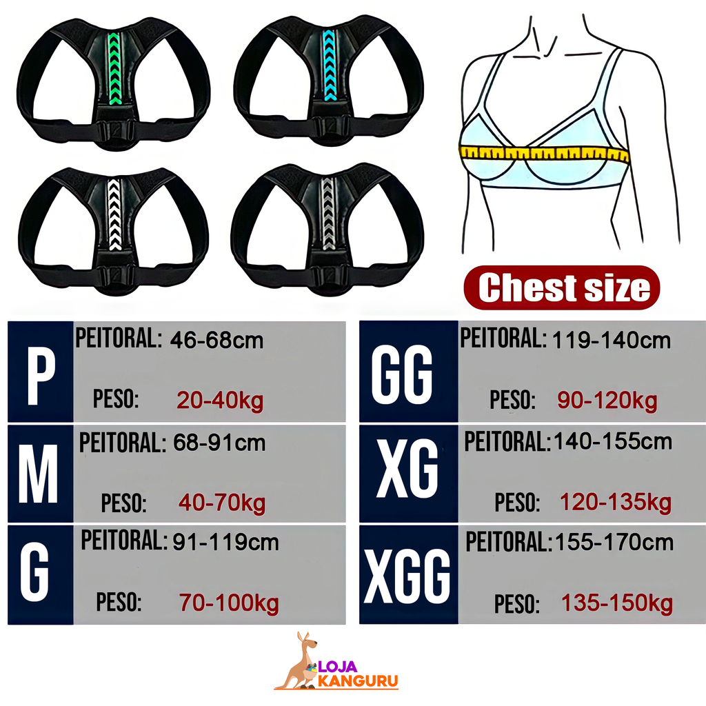 O Corretor fornece suporte de postura clavicular para todas as atividades, incluindo trabalhar, levantar e sentar na sua mesa de computador. Alinha corretamente sua postura tirando pressão da suas costas, aliviando assim a dor nas costas, pescoço, ombro e clavícula.